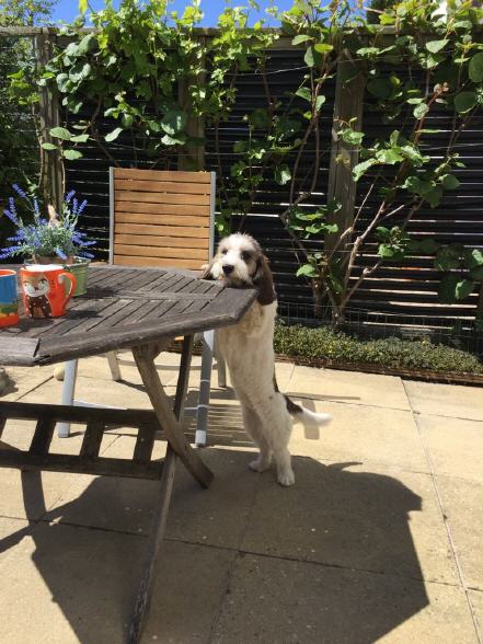De Petit Basset Griffon Vendeen is een kleine, krachtige, zeer licht gestrekte hond met een harde vacht en een levendig temperament. Hoofd: licht gewelfde schedel, duidelijke stop, goed ontwikkelde achterhoofdsknobbel. De voorsnuit is veel korter dan bij de grotere variant. Rechte neusrug, zwarte neusspiegel, de lippen zijn voorzien van een snor. Ogen: tamelijk groot met een levendige uitdrukking en borstelige wenkbrauwen. Oren: aangezet ter hoogte van de ooghoek, zacht, smal en dun, bedekt met lang haar. De voorzijde is naar binnen gedraaid. Ze mogen niet tot aan de neuspunt reiken. Lichaam: rechte rug, gespierd, stevig en breed. Diepe borstkas, matig geronde ribben. Ledematen: goede hoeking van schouder en opperarm, rechte voorbenen met tamelijk krachtige botten. Gespierde dijen, matige hoeking van achterhand. Voeten: normaal, met harde voetzolen. Staart: hoog aangezet, niet bijzonder lang. Vordt sabelvormig gedragen. Vacht: hard, middelmatig lang, vormt hier en daar bevedering. Kleur: 1. eenkleurig: roodachtig-geel, haaskleurig wit of grijs, 2. tweekleurig: wit met rood, wit met zwart of wit met grijs, 3. driekleurig: wit, zwart, en rood, wit met haaskleur en wit, grijs en rood. Gangwerk: vrij en licht. Schofthoogte: 34-38 cm. |