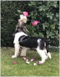 Vachtverkleuringen: Waar vinden we deze verkleuringen? - bruinrode traanstreep - bruinrode verkleuring aan de boven- en onderlippen (kan van het drinken of van speeksel komen) - bruinrode verkleuring aan de voeten (likken) - bruinrode verkleuring rond de anus (likken) - roze haren op de buik en aan de binnenzijde van de benen (likken) - bruinrood haar rond de vulva (likken, maar controleer op mogelijke nier-of blaasproblemen, die die oorzaak van het likken kunnen zijn. Wat is de oorzaak van de verkleuringen? Gebleken is dat een hoog ijzergehalte in het water of extra toevoeging van ijzer in sommige soorten blikvoer de oorzaak kan zijn. Het is goed mogelijk dat een teveel aan ijzer in het lichaam ook via speeksel en traanvocht wordt afgescheiden en zo de verkleuringen veroorzaakt. Zelfs is geconstateerd dat een overmatige produktie van oorsmeer roze haren rond de gehooringang veroorzaakt. Er zijn verschillende mogelijkheden om het probleem van te veel ijzer aan te pakken: 1. Onderzoek het voer op een te veel aan mineralen. 2. Gebruik gekookt water in die delen van het land, waar het drinkwater een hoog ijzerpercentage heeft. 3. Zorg dat de hond niet meer likt, c.q. geen overmatig tranende ogen meer heeft. 4. Controleer je voedingssupplementen. Behandeling Het is niet mogelijk om de verkleuring uit het haar te verwijderen zonder het haar te beschadigen. Het moet uitgroeien. Je kunt het tijdelijk camoufleren met kalk, poeder, maizena, maar pas op: van al die kalk en poeder kunnen de ogen weer meer gaan tranen! Wanneer je echter de oorzaak v.d. verkleuringen hebt weggenomen zal het haar zich vrij snel herstellen en weer smetteloos wit worden. |